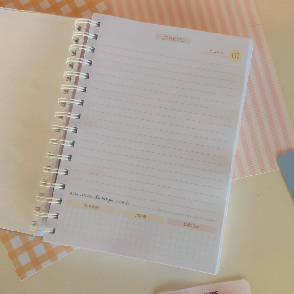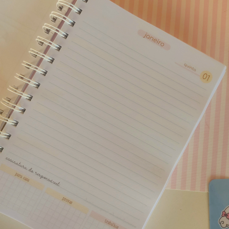 Agenda escolar ideal para organizar tarefas, compromissos e atividades ao longo do ano letivo, tornando a rotina escolar mais leve e eficiente.