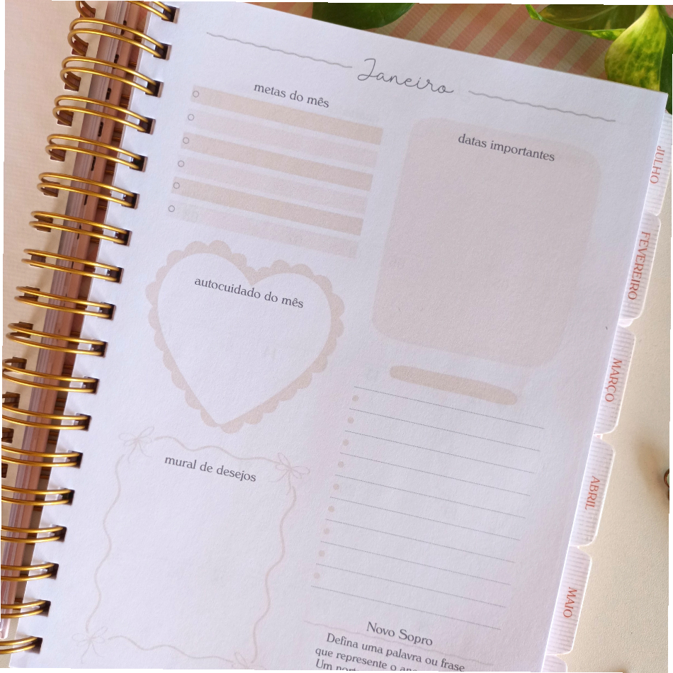 Com um design clean e ferramentas práticas, ele foi pensado para te ajudar a planejar e alcançar todos os seus sonhos em 2026.