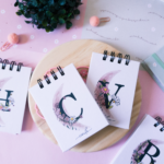 Os bloquinhos são em capa dura laminada, com wire-o metálico e folhas brancas.