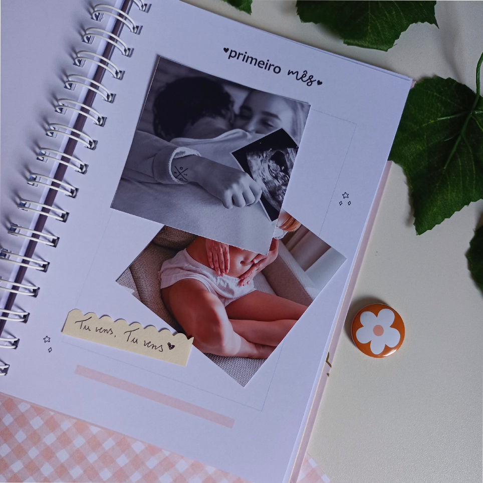 Também acrescentamos páginas extras, para que a mamãe possa registrar com fotos e informações todos os 9 meses dessa doce e maravilhosa espera.