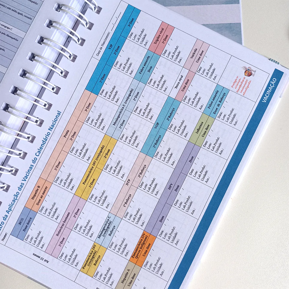 A nossa caderneta é produzida com a última atualização do Ministério da Saúde, tem páginas mais grossinhas, folhas extras para anotações e consultas e muita coisa linda.♥