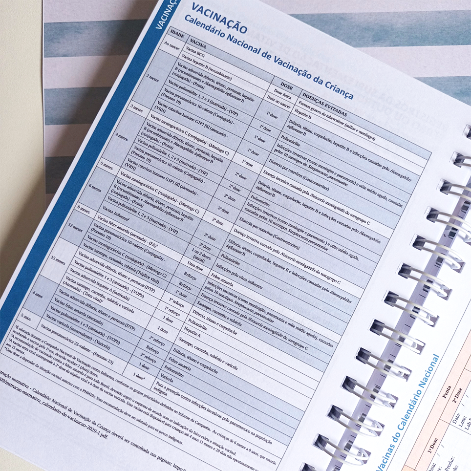 A nossa caderneta é produzida com a última atualização do Ministério da Saúde, tem páginas mais grossinhas, folhas extras para anotações e consultas e muita coisa linda.♥