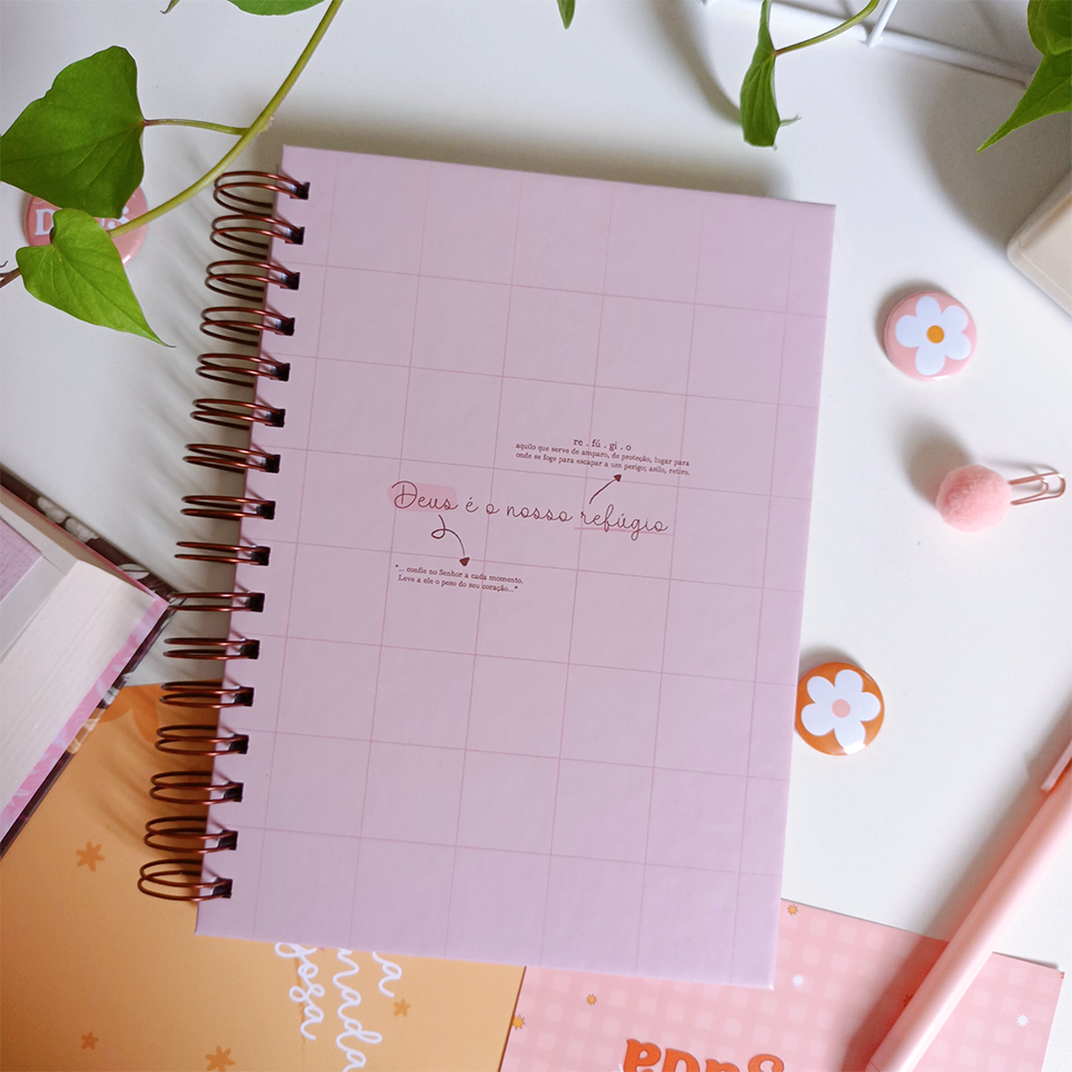 Um caderno A5 super lindo, para lembrar todos os dias que Deus é o nosso refúgio