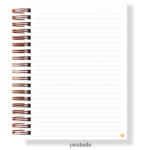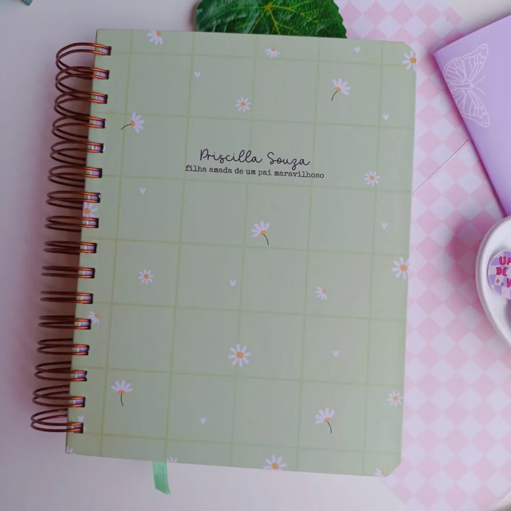 Você pode personalizar a capa com nome e frase, escolher como deseja as páginas e ainda escolher a gramatura das folhas.