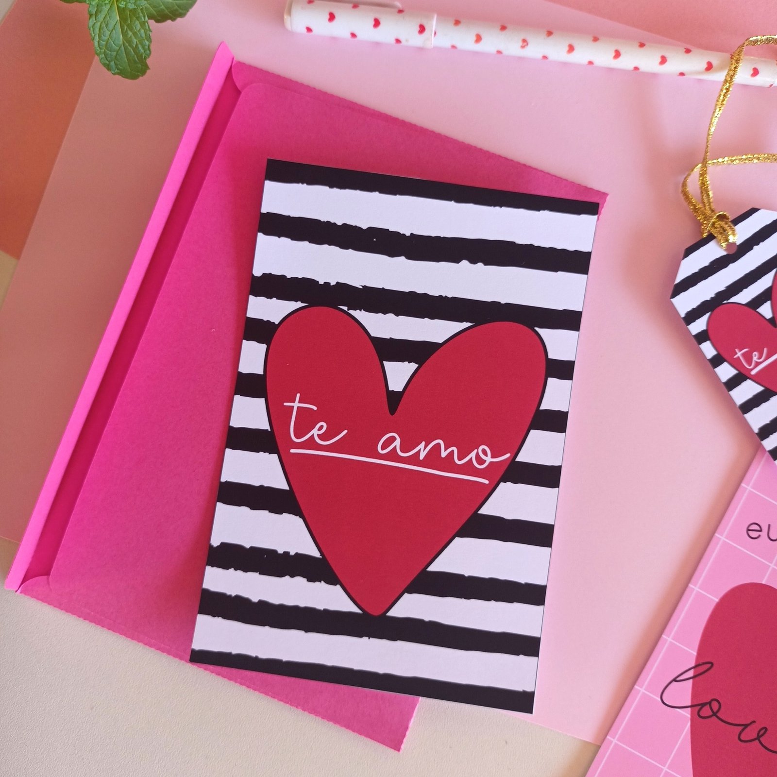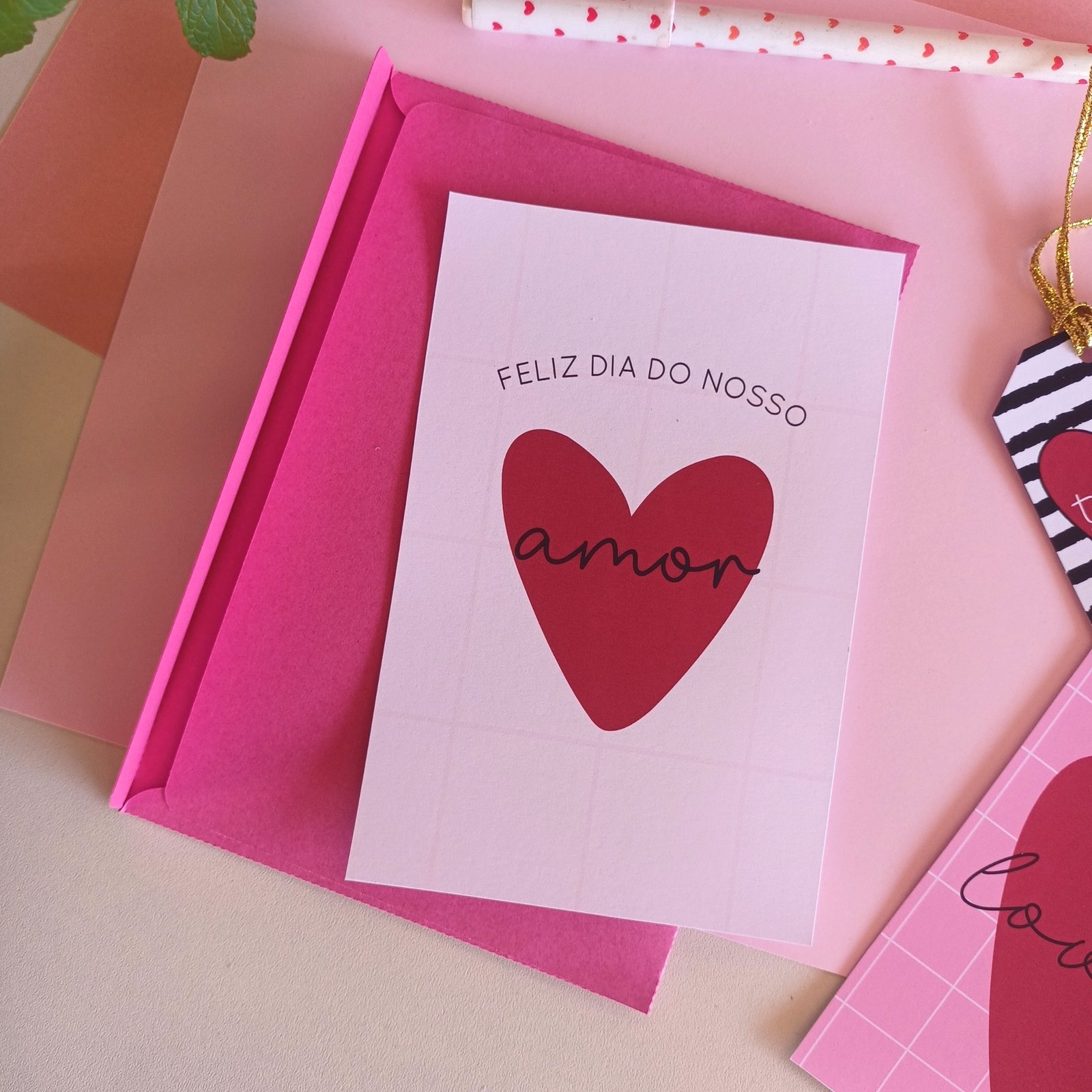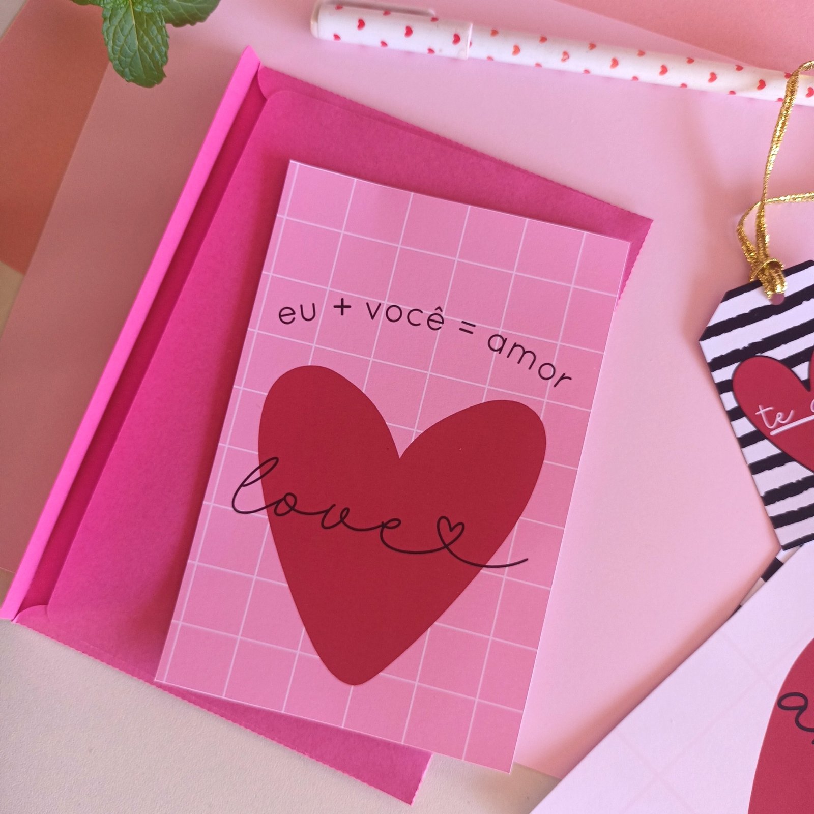 Acompanha: 1 cartão 180gramas (somente 1 face) tamanho 10×15 e um envelope(pode ser rosa ou vermelho de acordo com a disponibilidade).