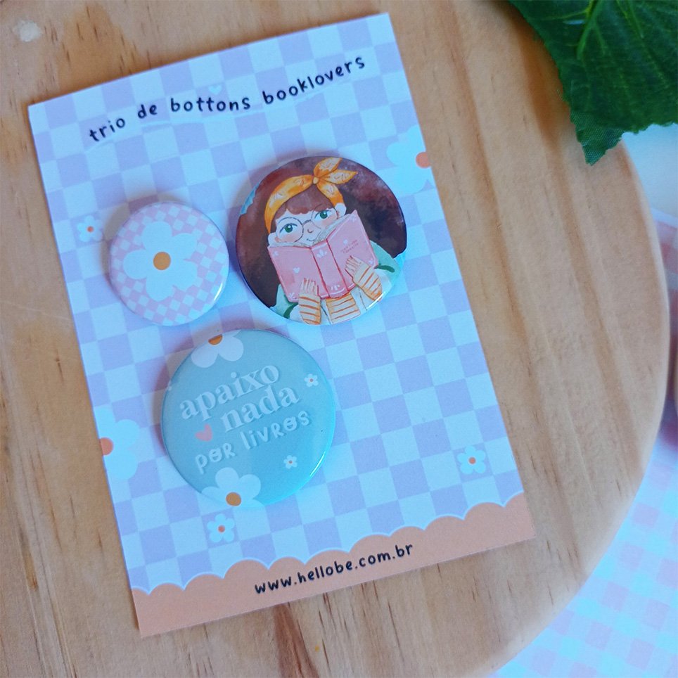 Kit com 3 bottons alfinetes lindos, para ressaltar o prazer em ser leitora.