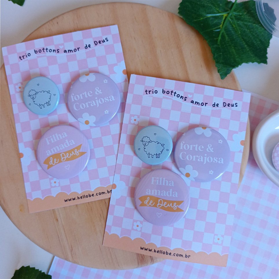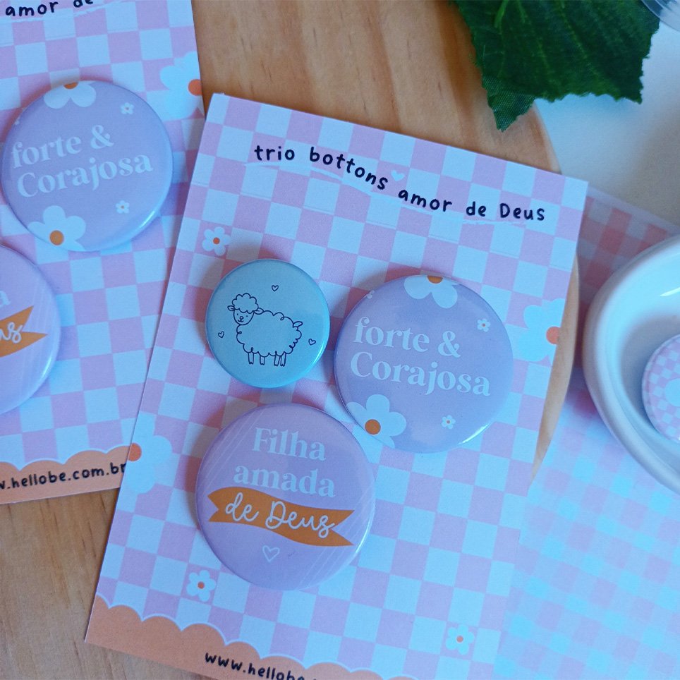 Kit com 3 bottons alfinetes lindos, para nos lembramos todos os dias o qual grande é o amor de Deus.