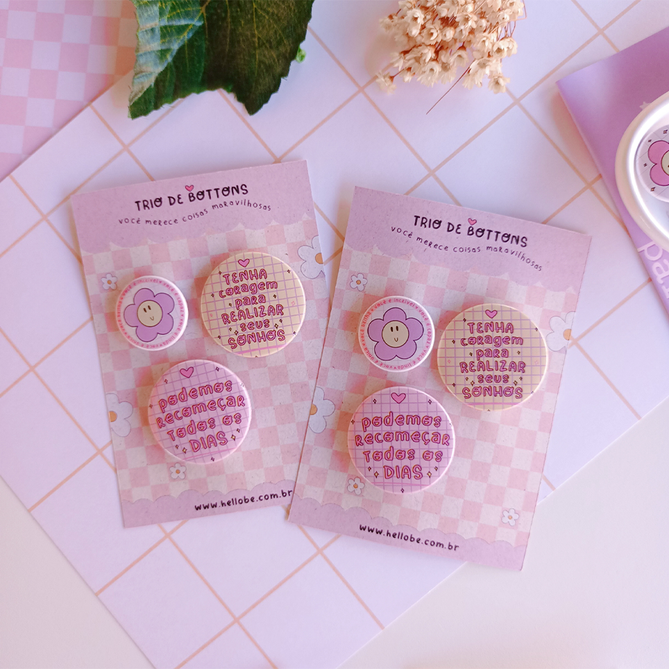 Kit com 3 bottons alfinetes lindos, para nos lembramos que podemos tudo se acreditarmos em nós mesmos.