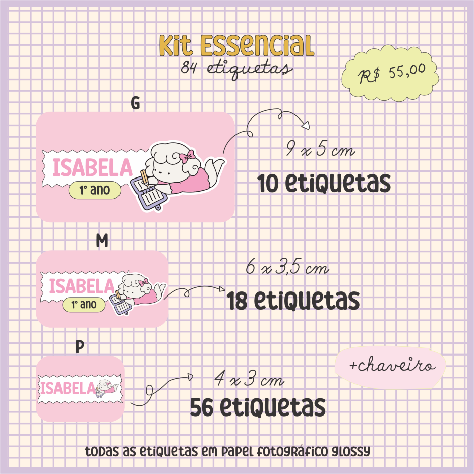 28 etiquetas P (indicadas para lápis e canetas)