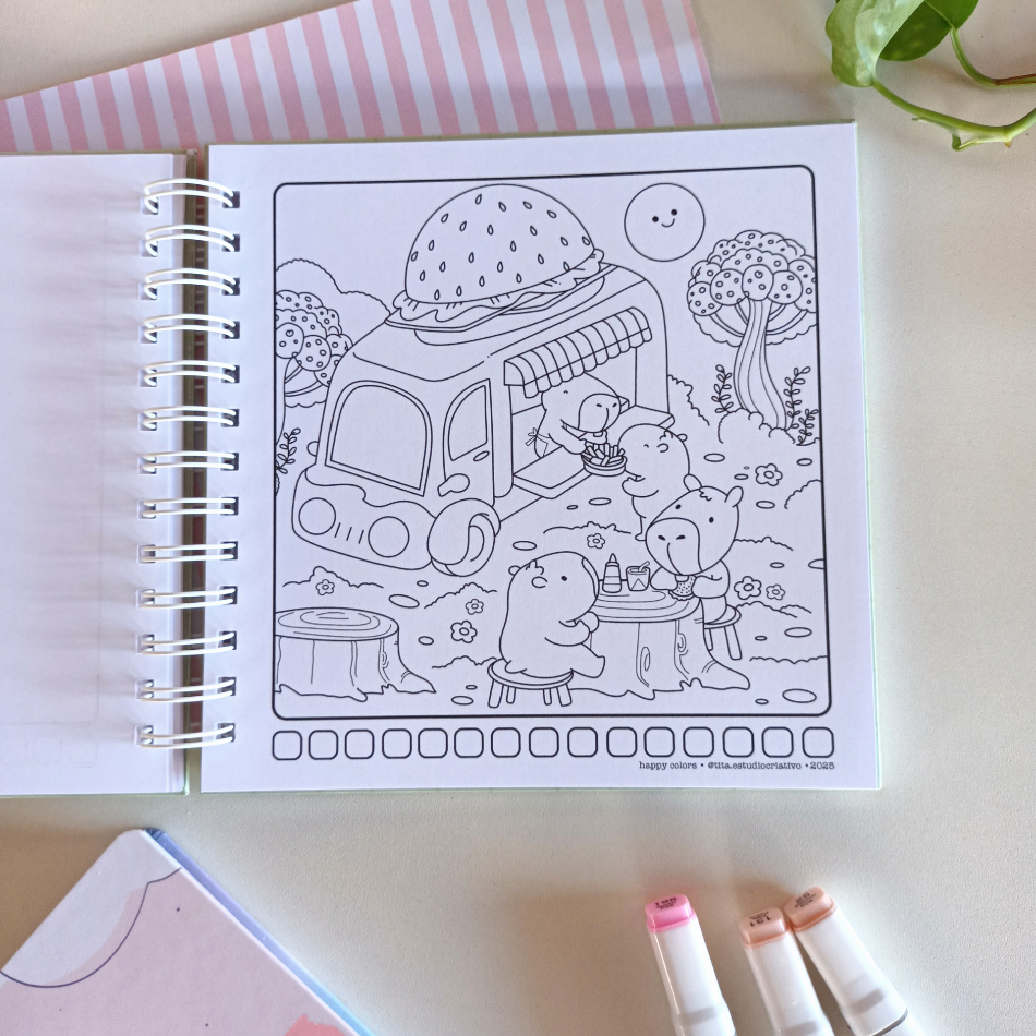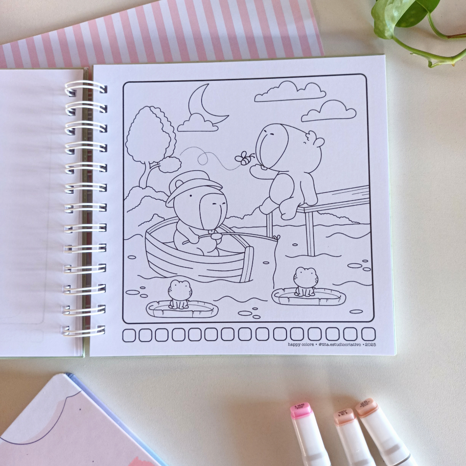 Pinte diversas cenas do cotidiano apresentadas de forma fofa, permitindo que você enxergue o extraordinário nas pequenas coisas do dia a dia.