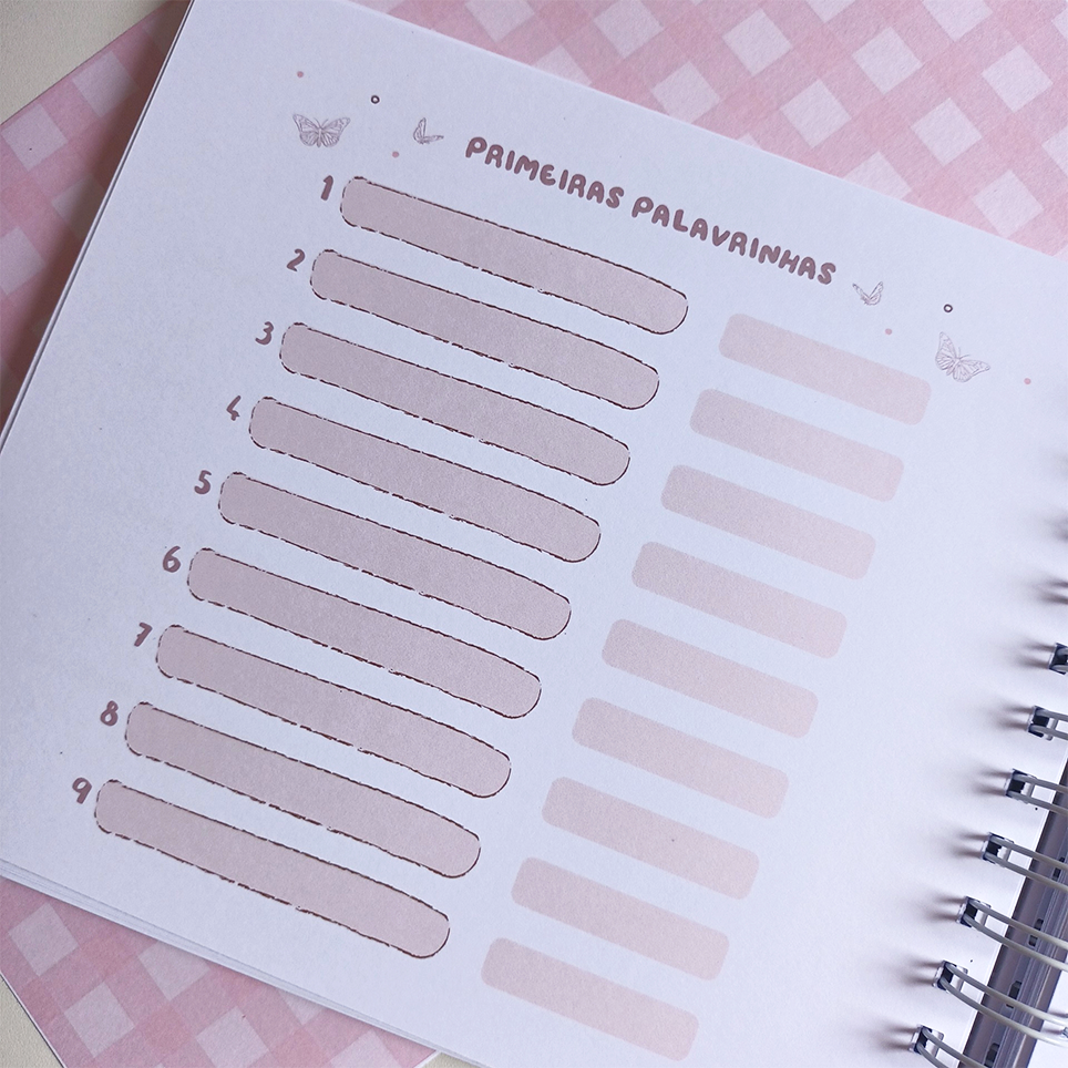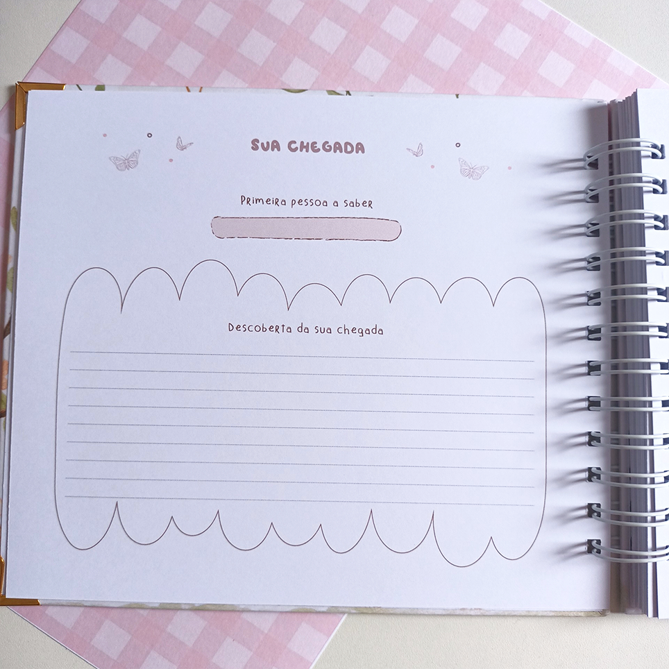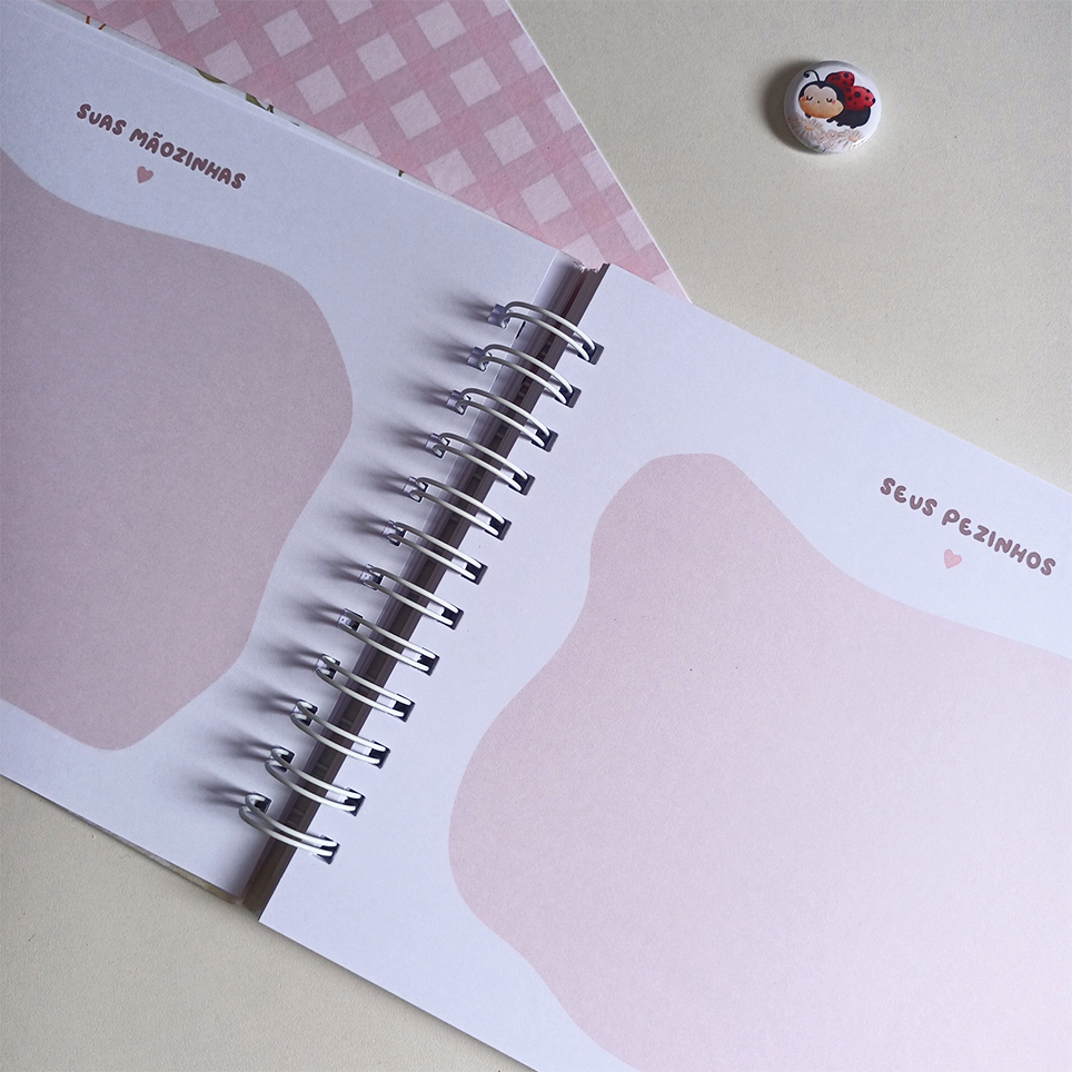 O nosso Livro do Bebê tem um layout clean e delicado, deixando espaço para você usar a imaginação e decorar da forma que mais te agrade.