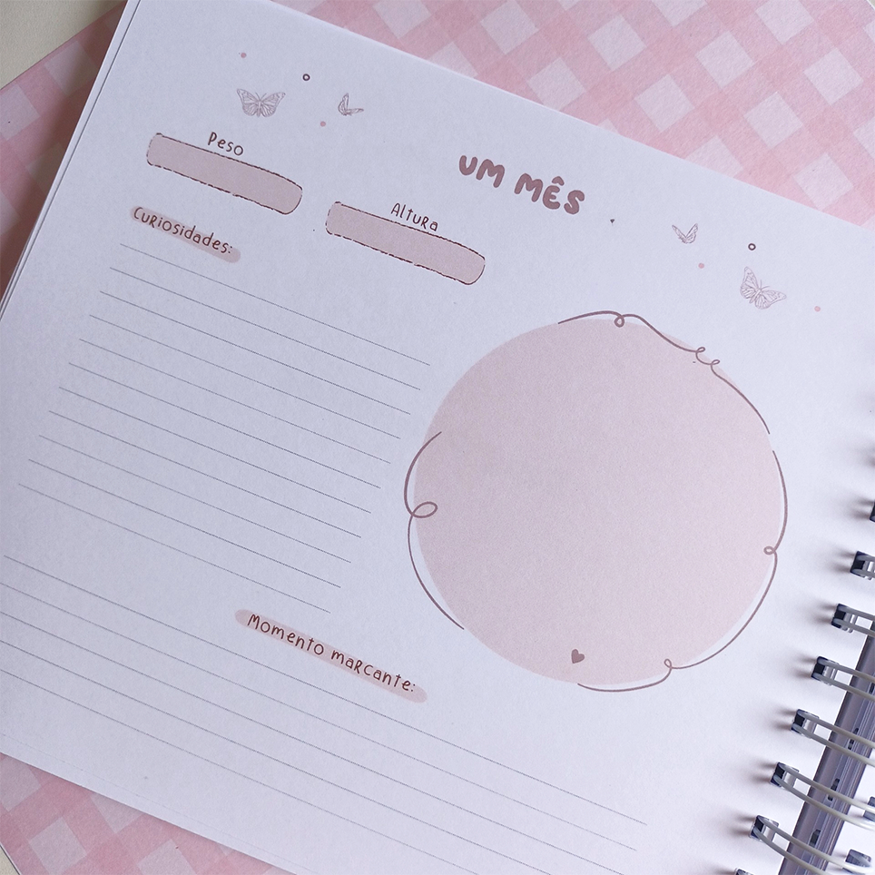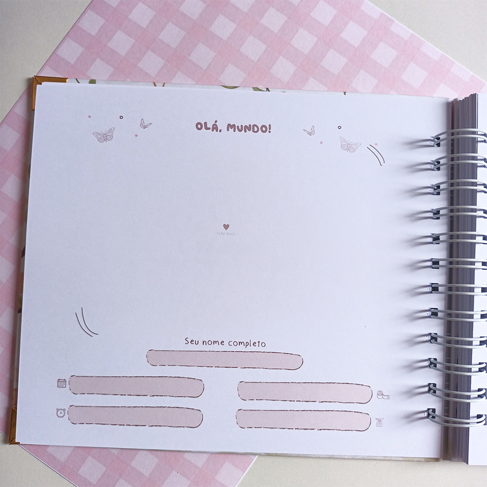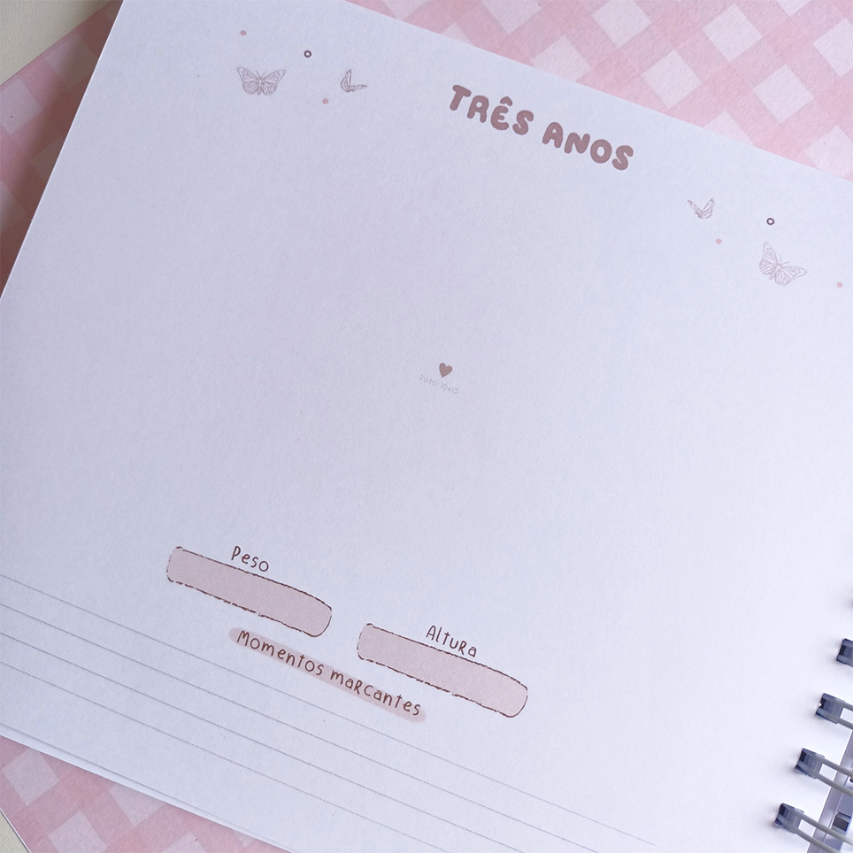 Com espaço para registrar todos os momentos especiais, através de fotos, anotações e amor em cada página.